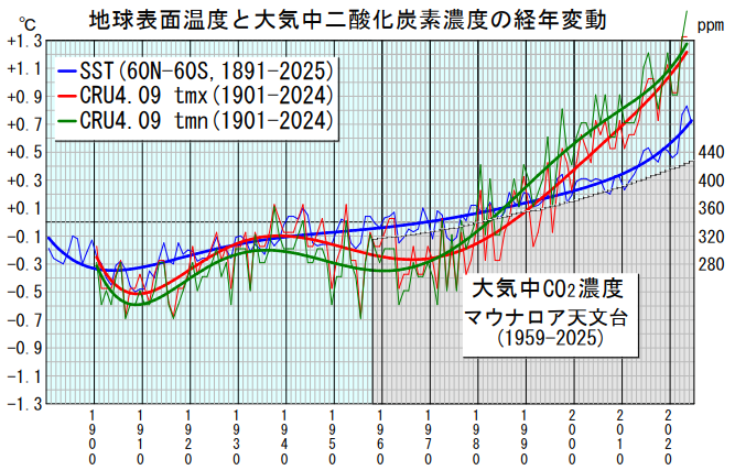 3.1 地球表面温度と大気中二酸化炭素濃度の経年変動について