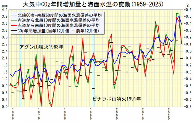 3.2 大気中二酸化炭素濃度年増加量と海面水温の経年変化について